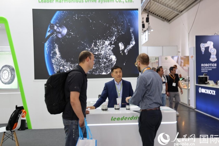正在姑苏绿的谐波公司展台,一个个尺寸各别,用于工业机械人的减速器、数控转轴等产物吸引良多客商前来参不雅洽商。该公司全球营业总裁杜建斌说,此次参展的焦点产物为谐波减速机,通过齿差传动实现100!1减速比,扭转施行器则具备高力矩输出,这些都是自从研发产物,遭到市场欢送。目前公司产物正在国内机械人市场占比力高,将来公司将海外营业做为开辟沉点,跟着产质量量不竭提拔,但愿将海外营业占比提拔至50%以上。